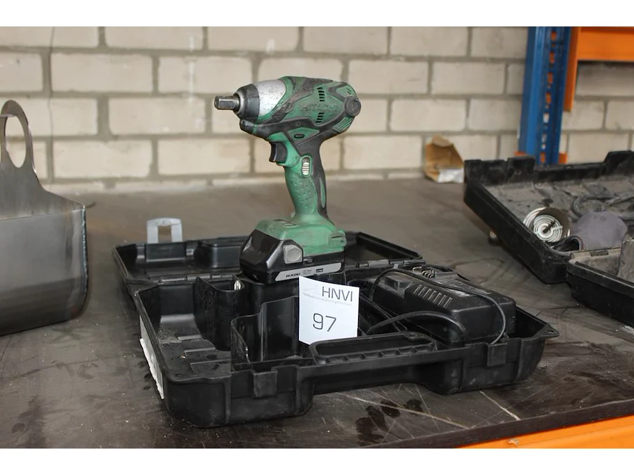 Accu slagmoersleutel HITACHI met accu en lader in koffer.