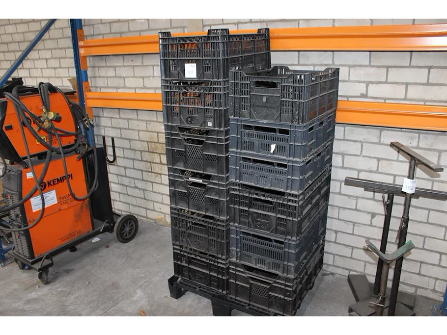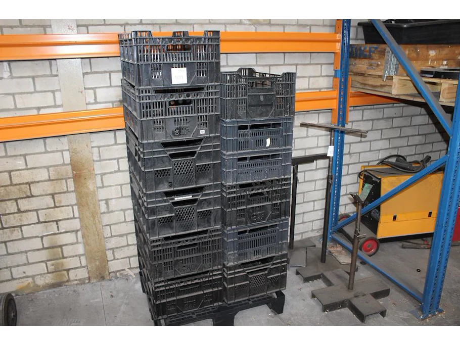 Twaalf stapelbare kunststof kratten 60 x 40 cm.
