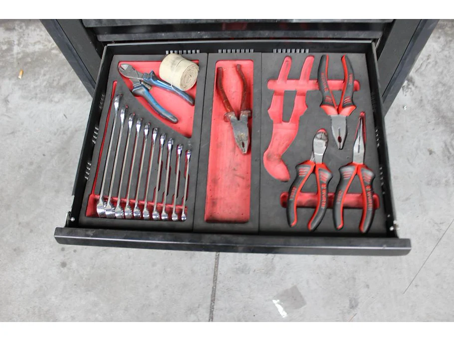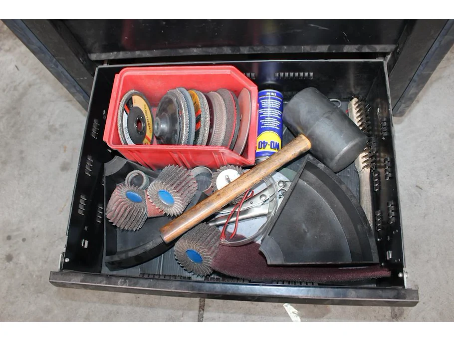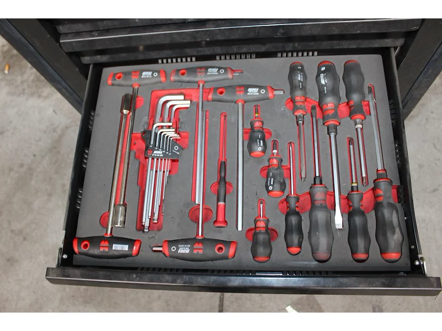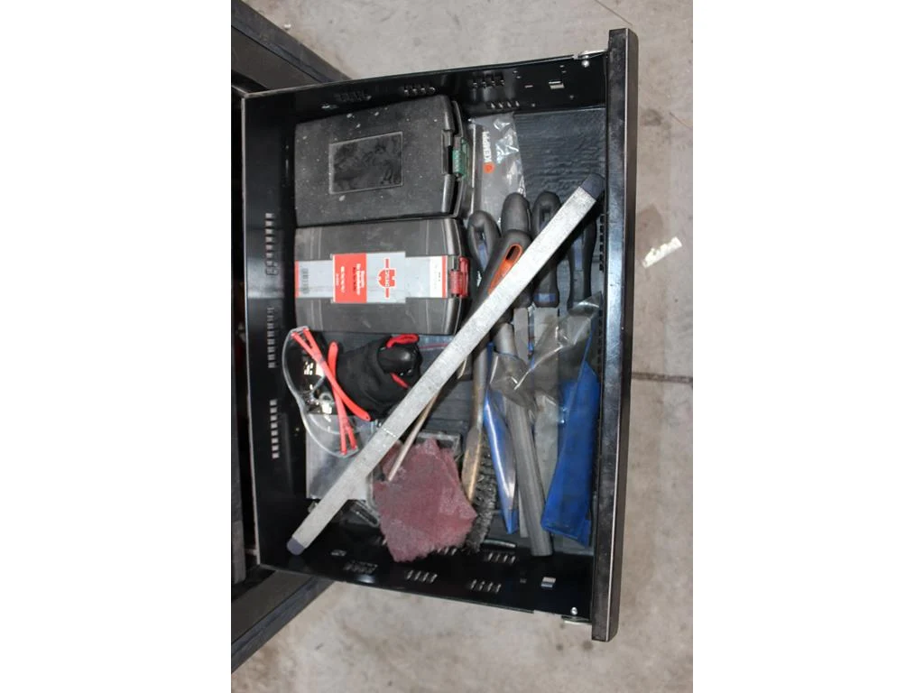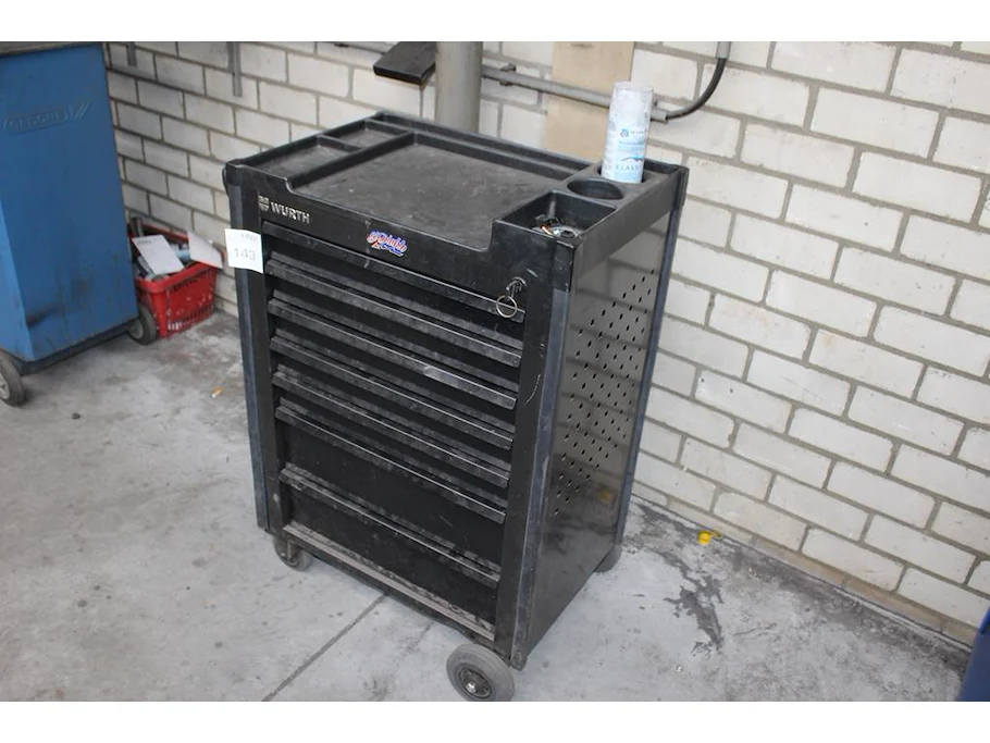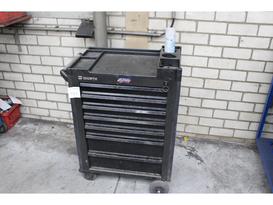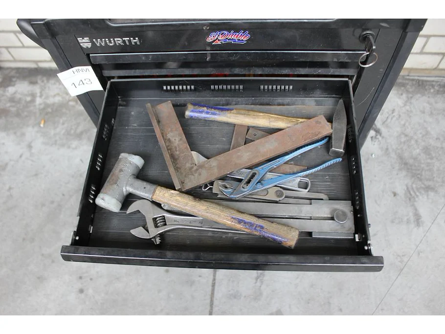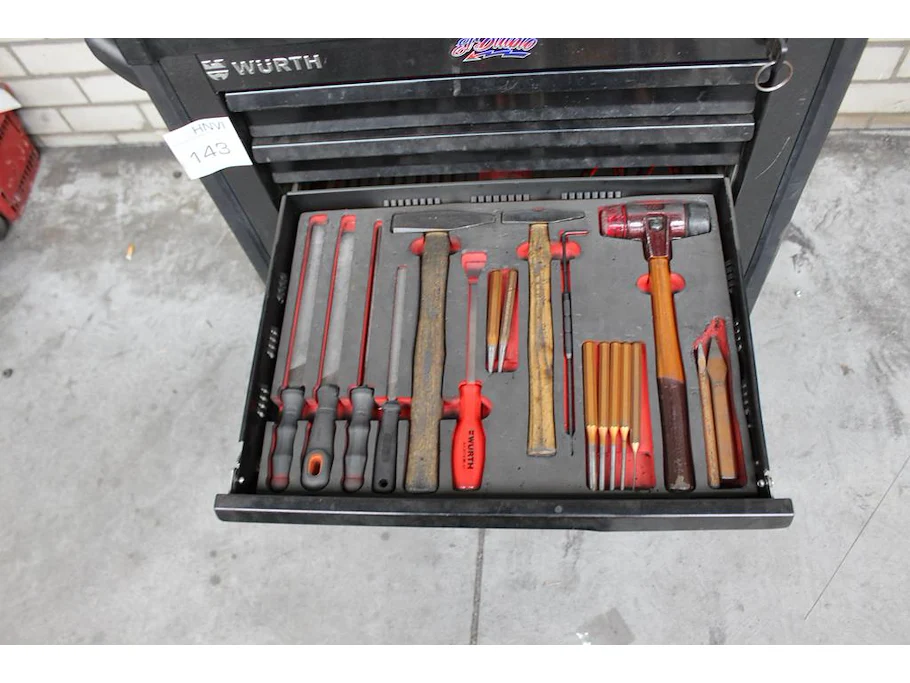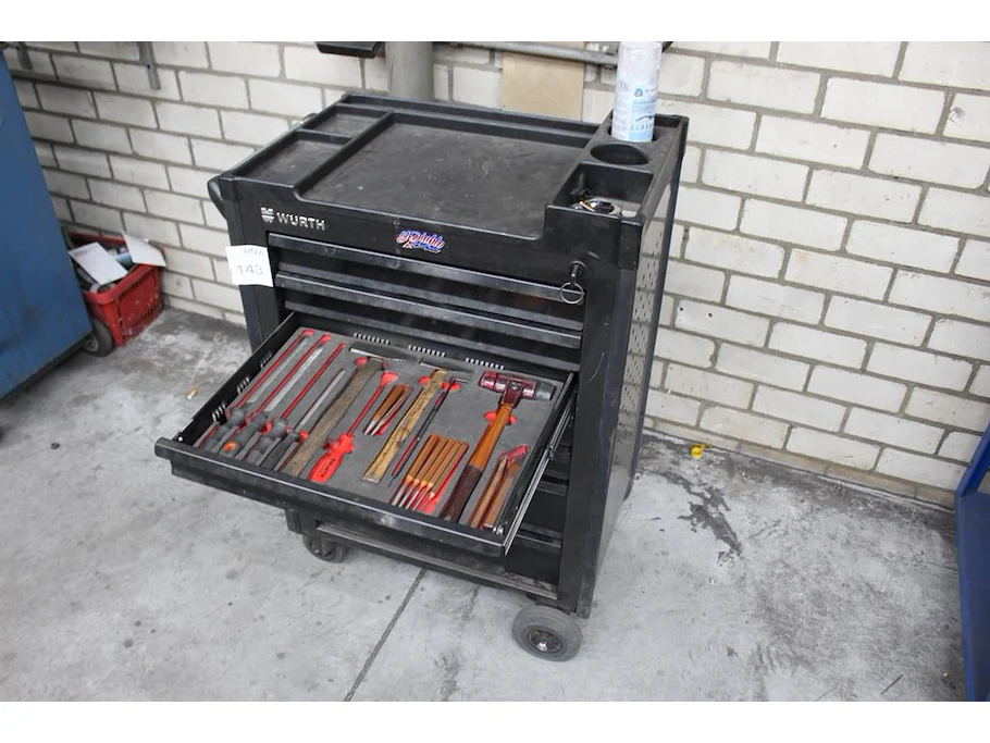 Gereedschapswagen wurth gevuld met divers gereedschap w.o. hamers, vijlen, steeksleutels, tangen, inbus, sc...