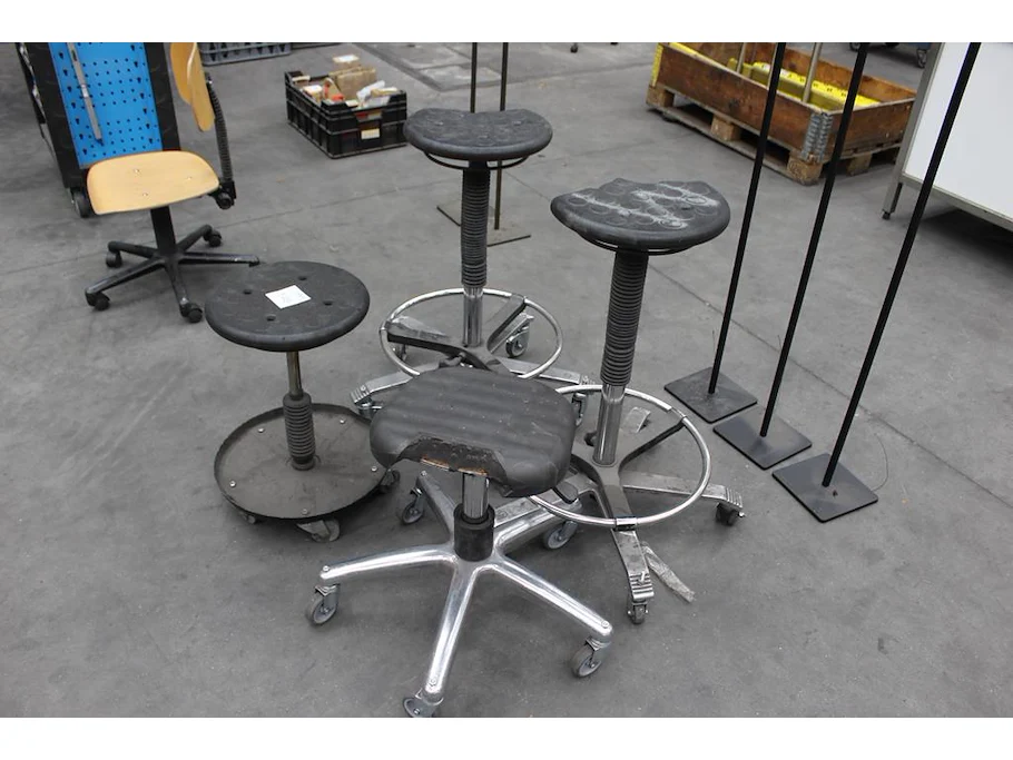 Vier werkkrukken met gebreken.