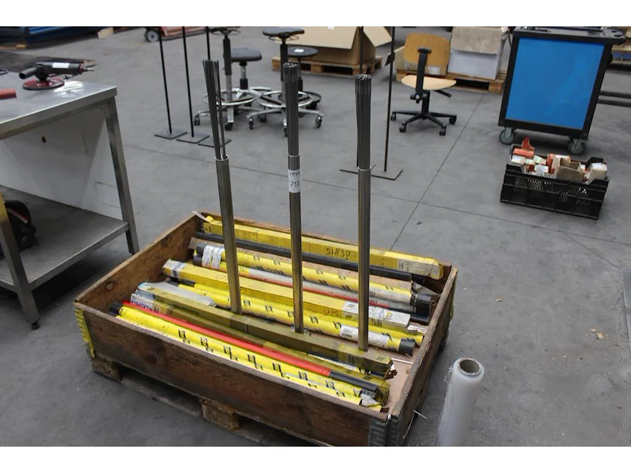 Laselektrodes in diverse uitvoeringen in palletbox.