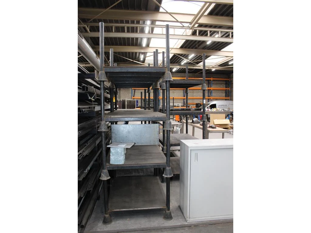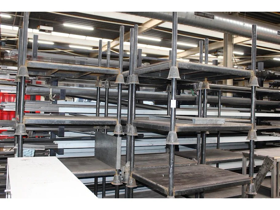 21 stapelbare bokken met 20 opzetranden en afmeting 115 x 85 x 70 cm.