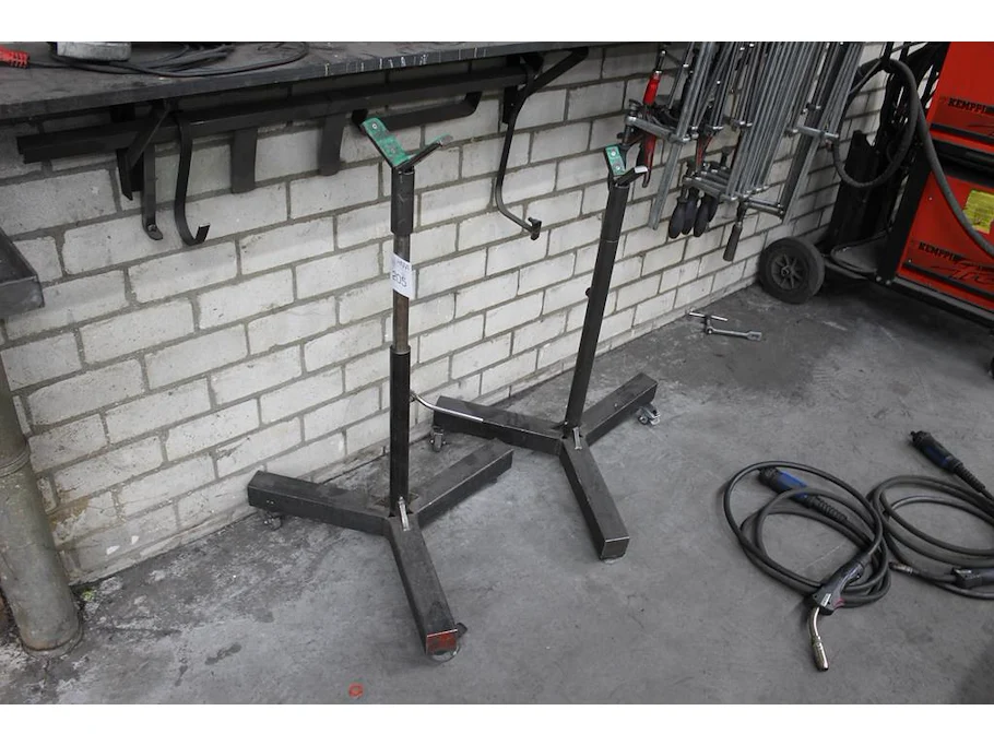 Twee verrijdbare machineknechtjes. 1 wiel ontbreekt.