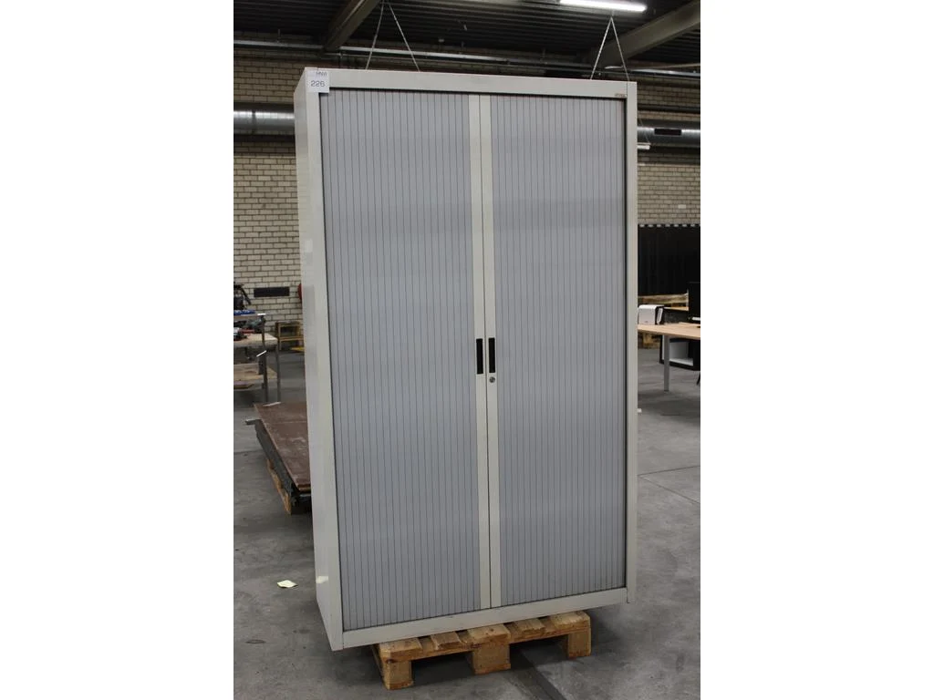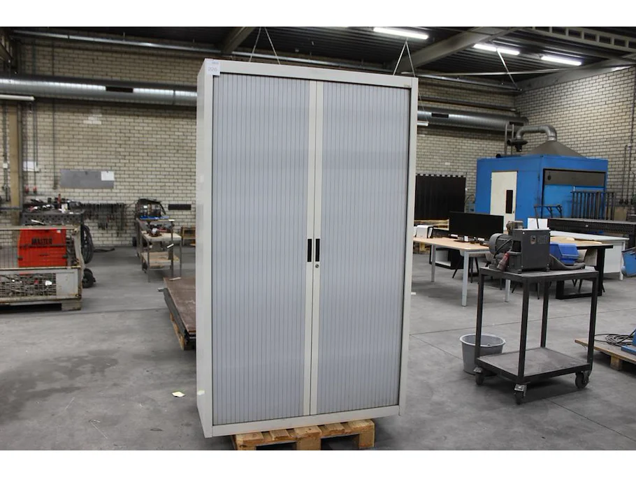 Magazijnkast met 2 roldeuren en afmeting 120 x 45 x 200 cm.