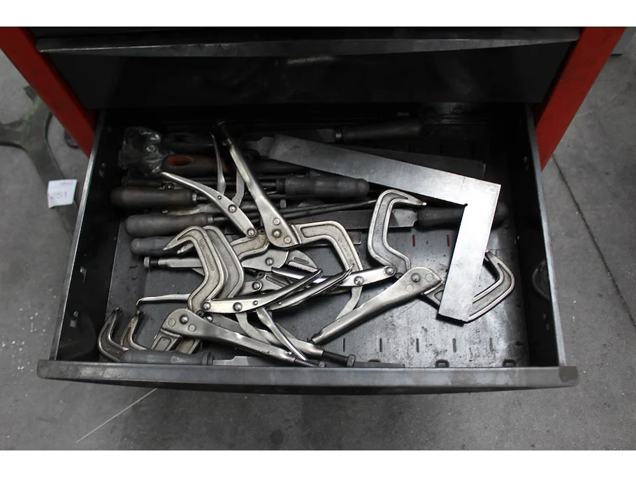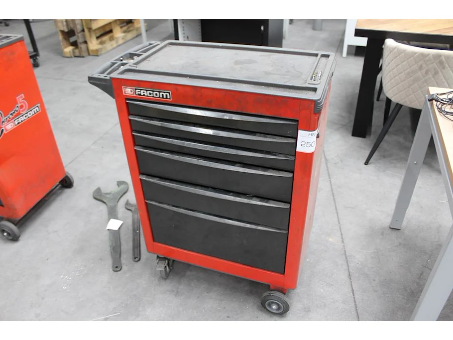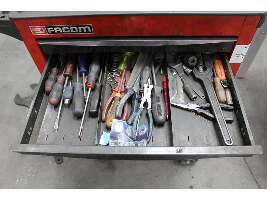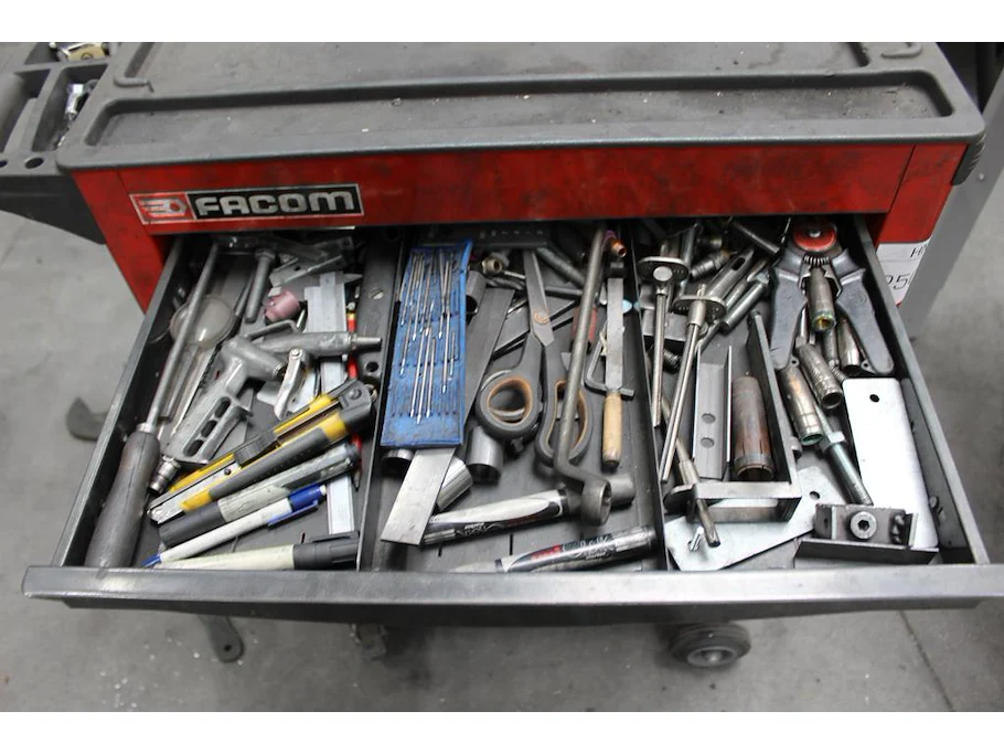 Gereedschapswagen facom chrono 5 gevuld met divers gereedschap w.o. vijlen, sleutels, schroevendraaiers, ta...