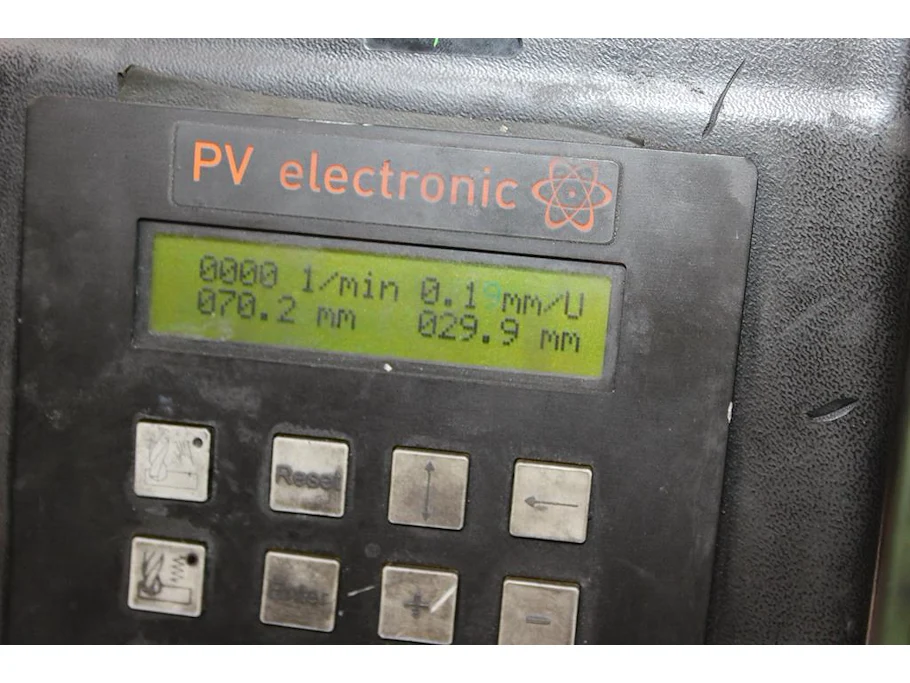 Kolomboormachine flott p40stg-fb met digitale aflezing en pneumatisch gestuurde machineklem.