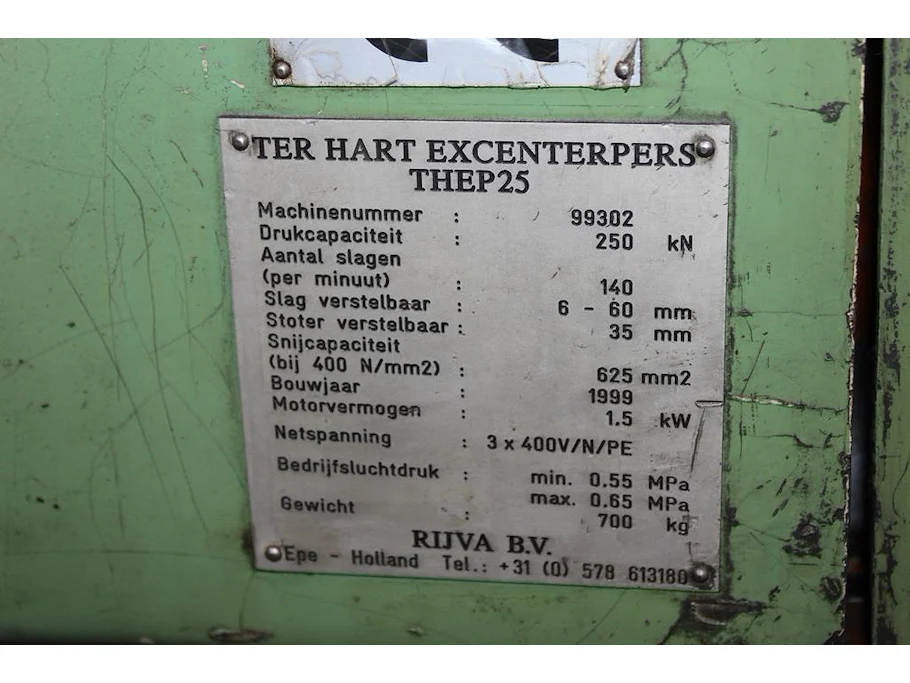 Excenterpers TER HART THEP25. 25 ton. Bouwjaar 1999.