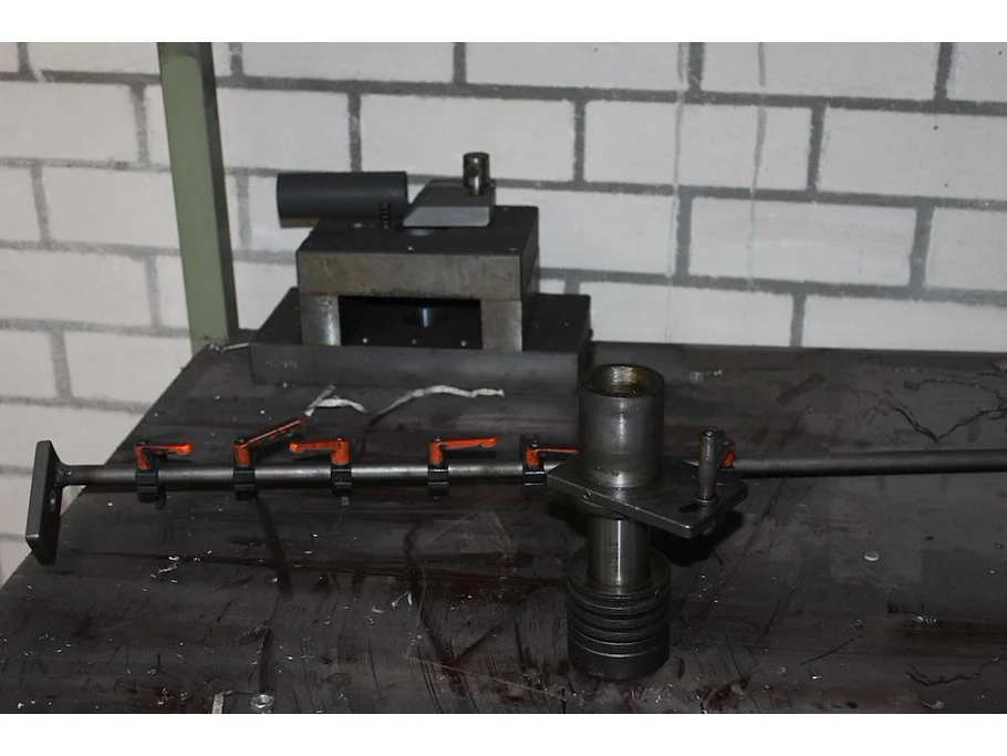 Diverse machine onderdelen in schappenkast o.a. weber en gama