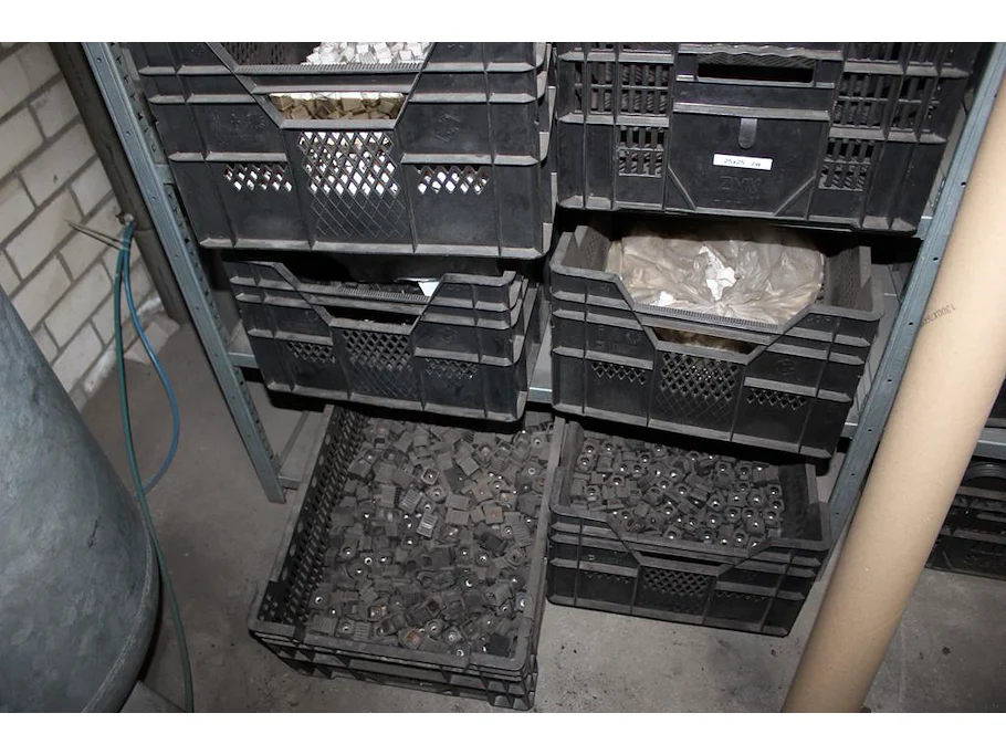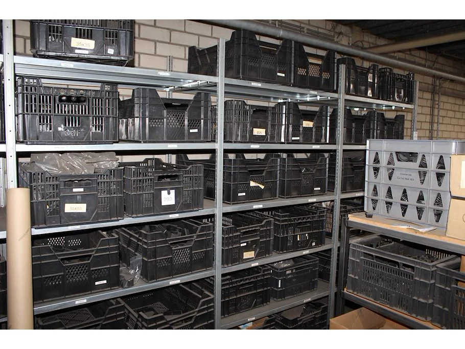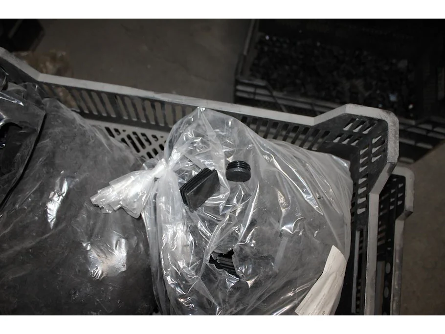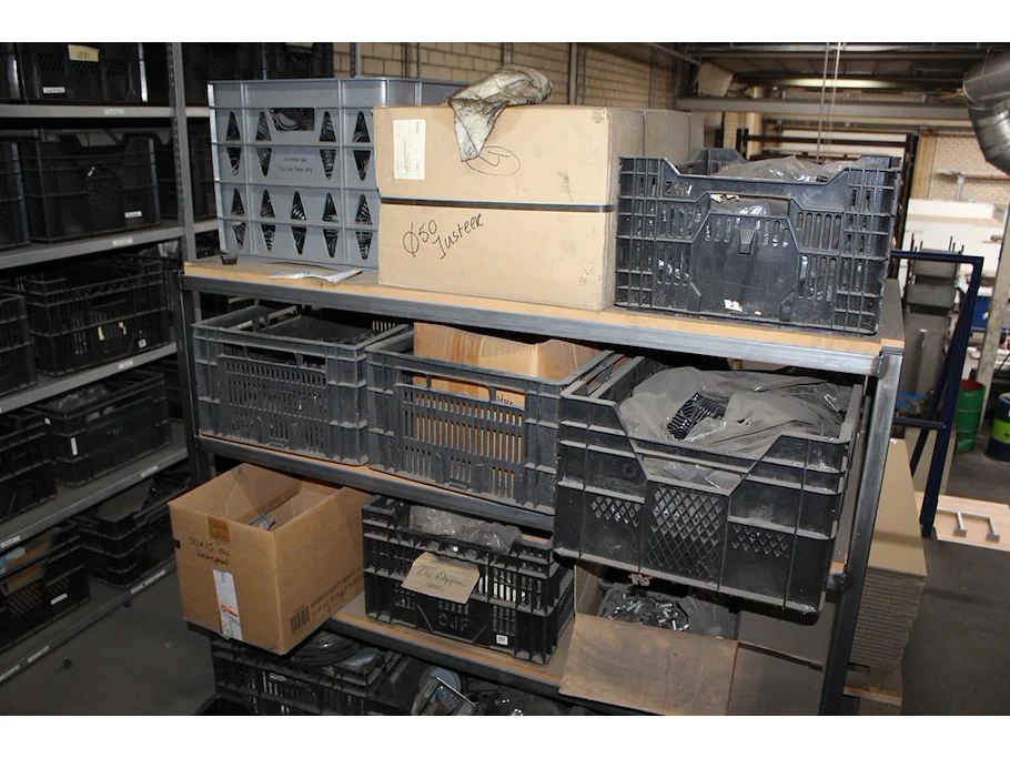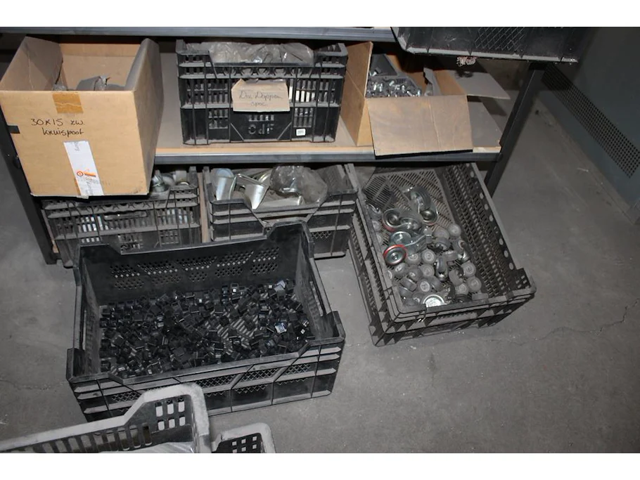 Kunststof doppen in grote diversiteit in 59 kratten en enkele dozen, o.a. de maten rond 20 25 30 40 60 en vierkant 15 20 25 50 70 enz.