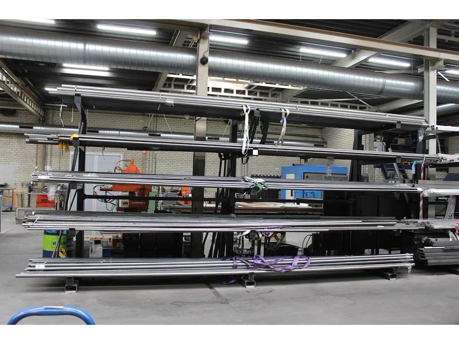 Metalen buizen op vijf draagarmen waaronder doorsnede 30, 40, 55 en 60 MM, totaal circa 200 stuks