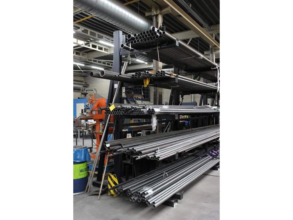 Metalen buizen op vijf draagarmen waaronder doorsnede 30, 40, 55 en 60 mm, totaal circa 200 stuks