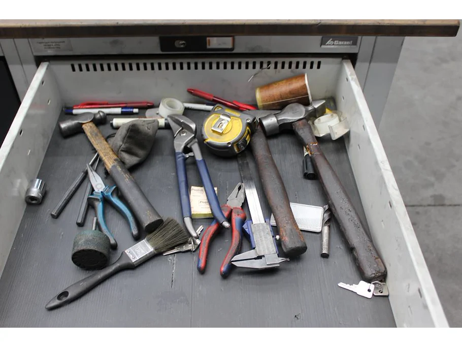 Mobiele werkbank garant afm. 125 x 75 x 95 cm, incl. gevuld met diverse gereedschap
