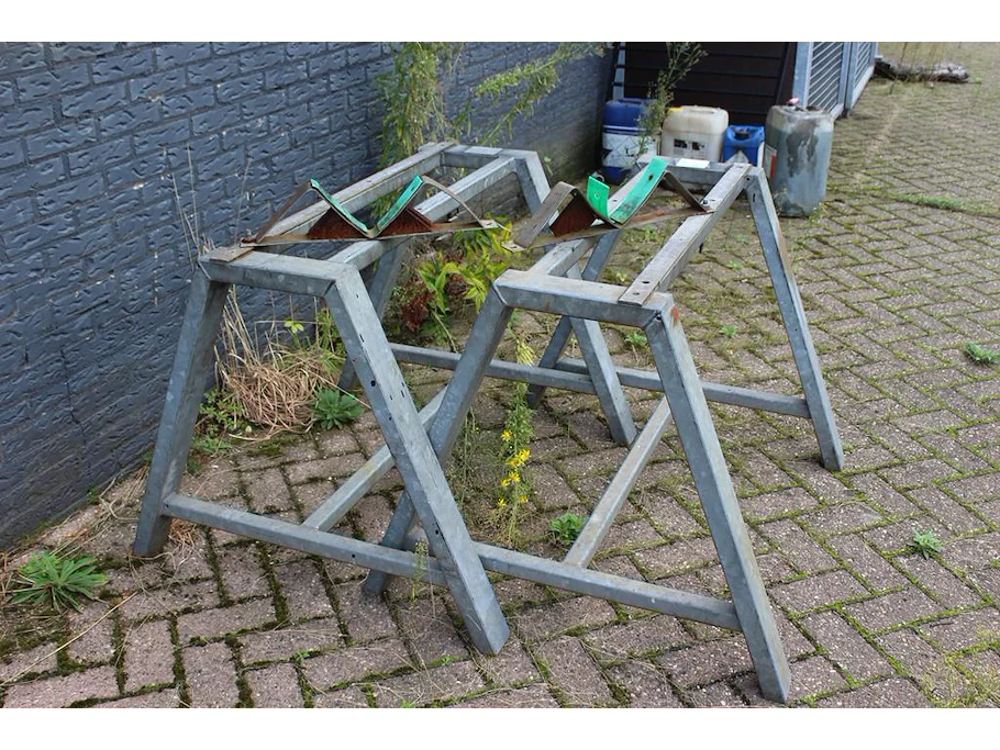 Twee metalen bokken afm. 100 x 80 x 75 CM