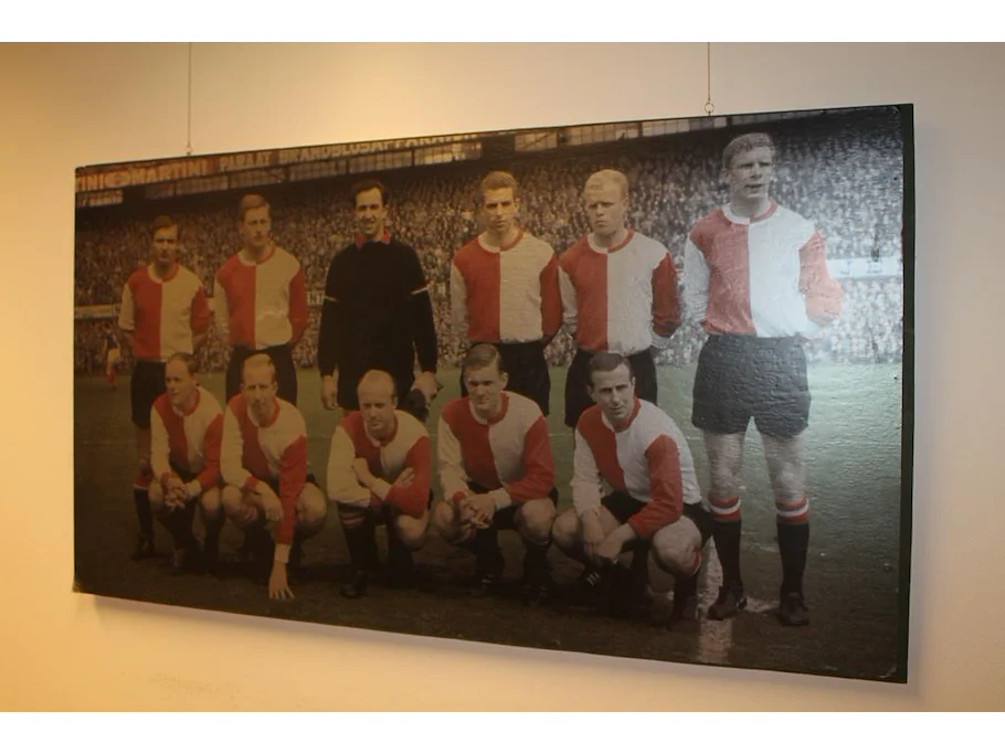 Foto op hout FEIJENOORD. Afmeting 185 x 102 cm. Vermoedelijk elftal foto uit het kampioensjaar 1961.
