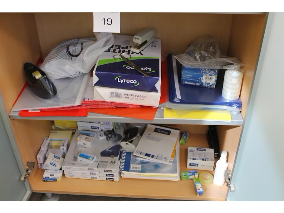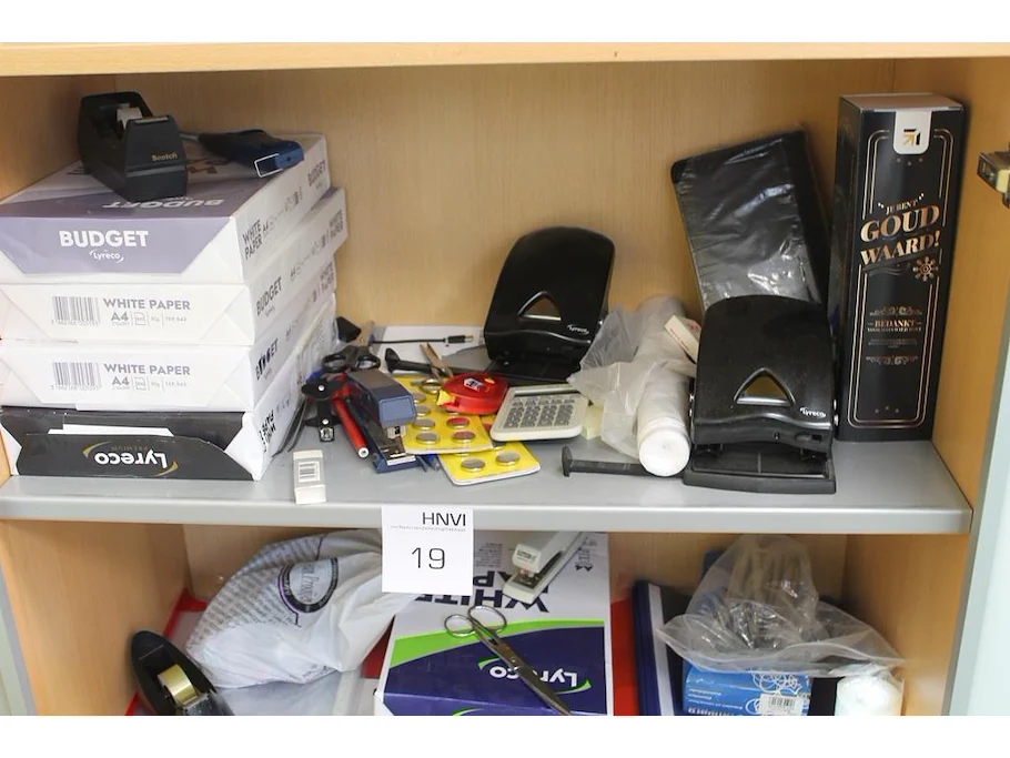Kantoormaterialen w.o. printpapier, perforatoren, schrijfgerei, etc.