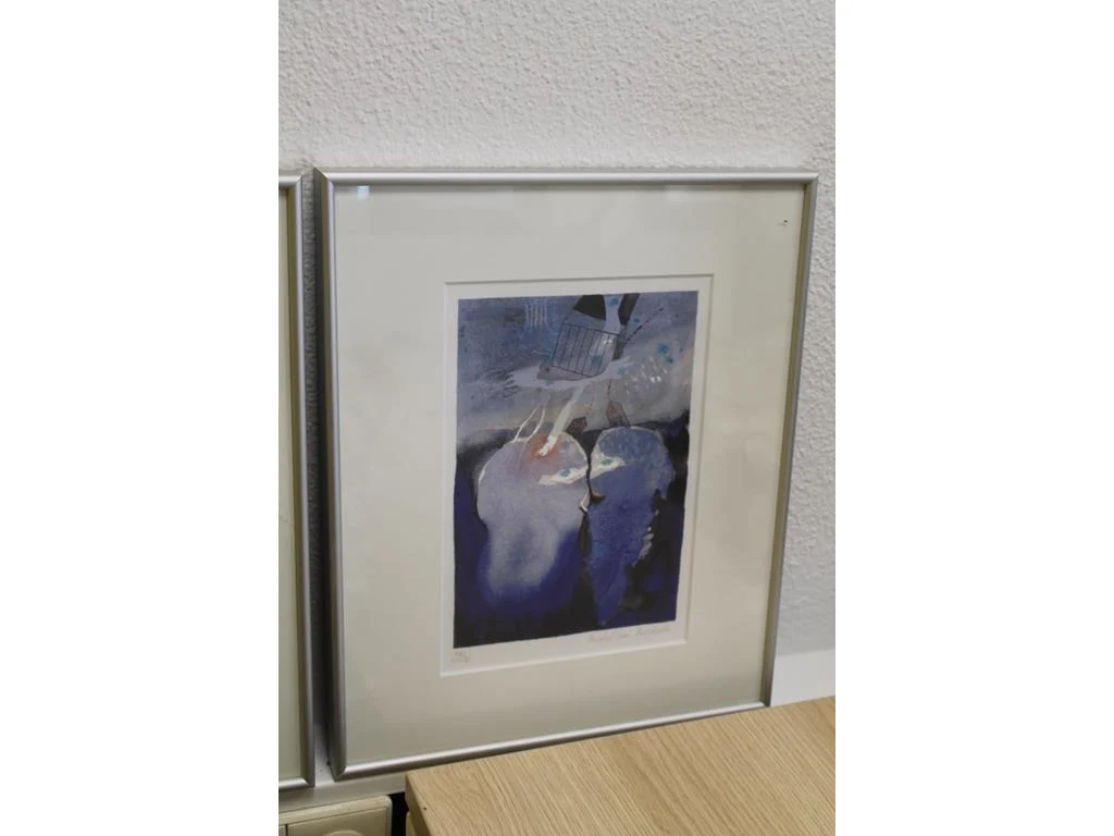 Vier gesigneerde litho's in lijst. afmeting 35 x 42 cm.