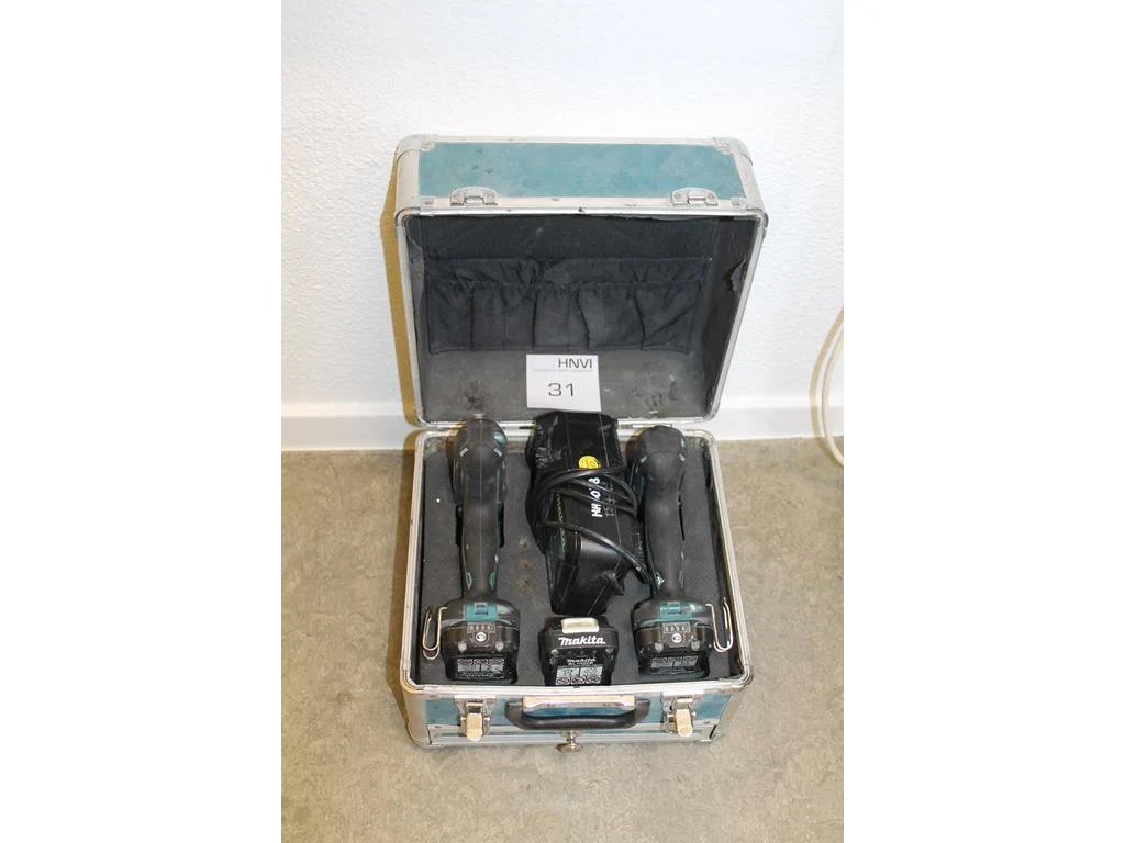 Accuset MAKITA 10,8V met schroef- en slagschroefmachine, 3 accu's en lader in koffer.
