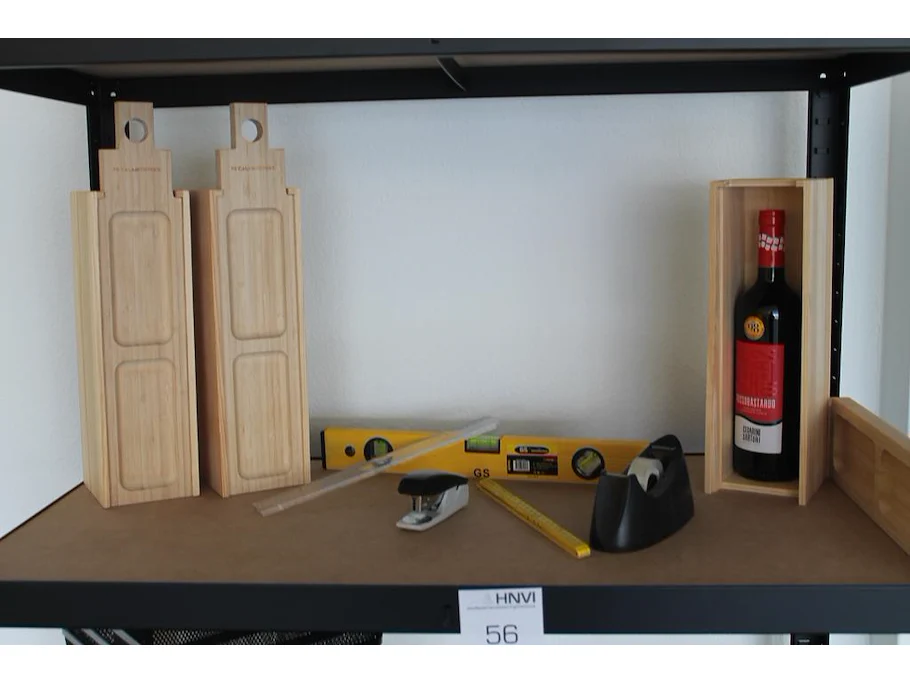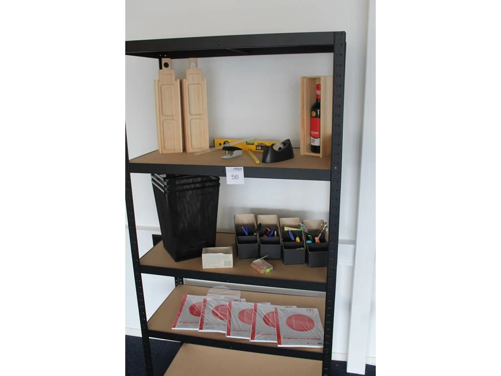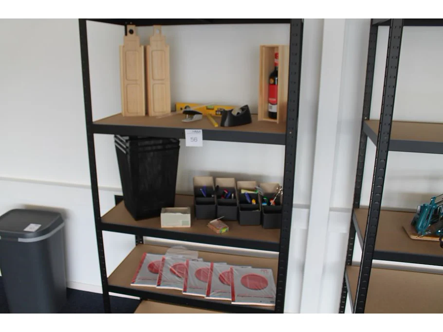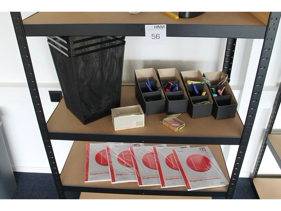 Kantoormaterialen w.o. wijn, ringbandinterieurs, schrijfgerei, prullenbakken, etc.
