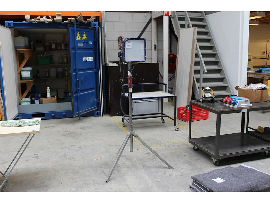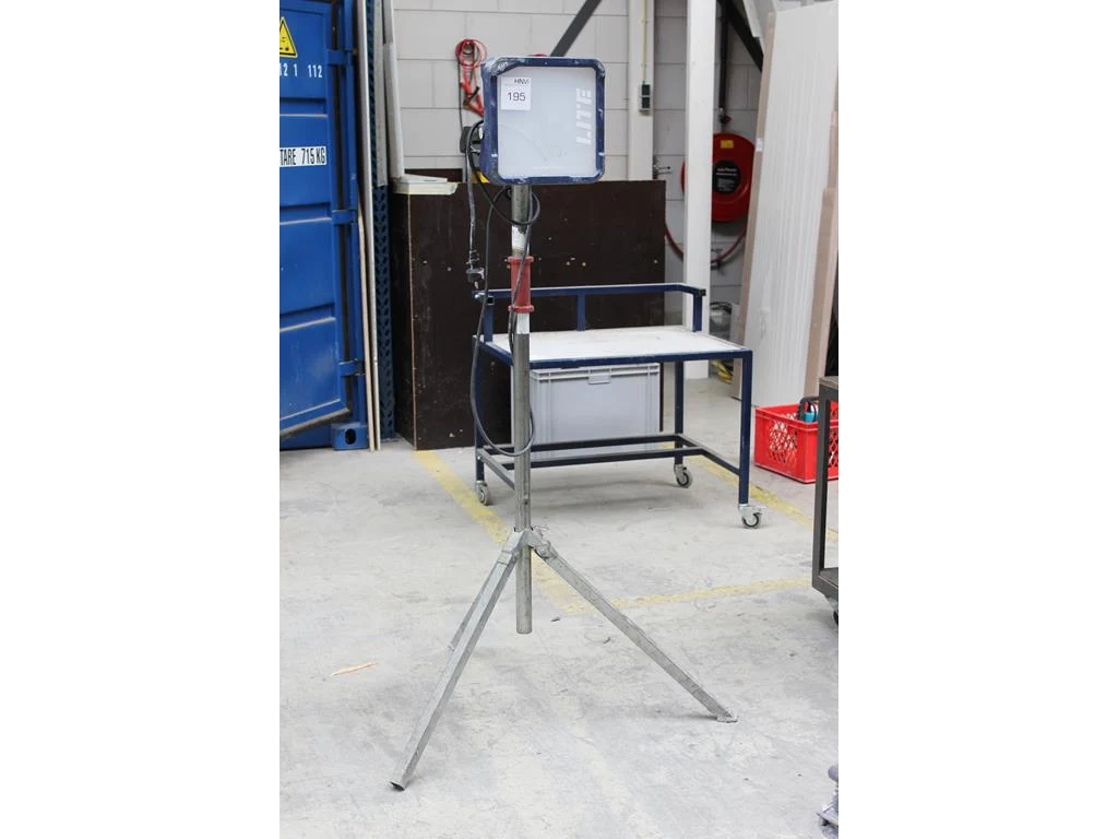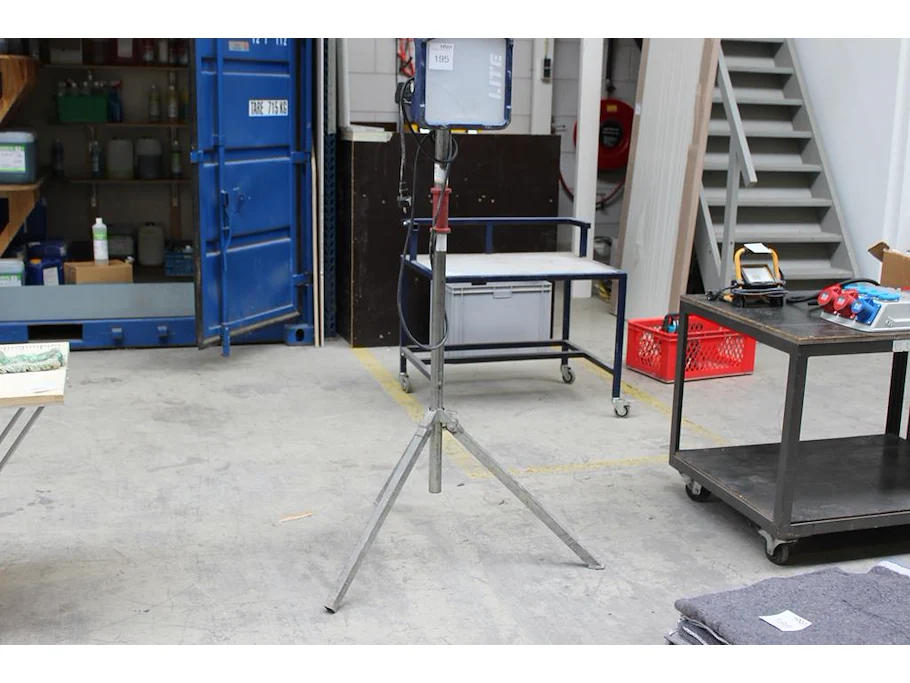 Bouwlamp scangrip op in hoogte verstelbaar statief.