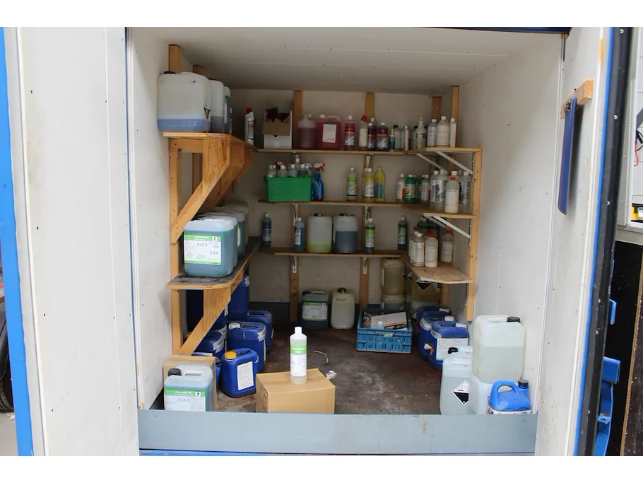 Schoonmaakproducten in container w.o. ontgeuring fris, roetreiniger, sanitair reiniger, interieurreiniger, sano sept, etc. let op: exclusief container.
