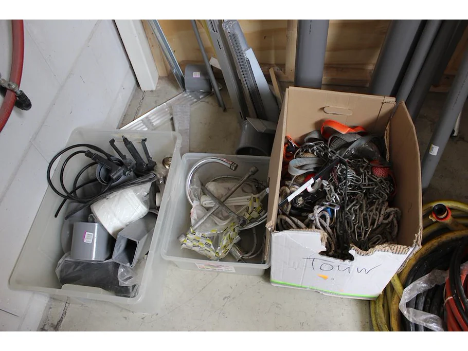 Bouwgerelateerde producten w.o. PVC buis, slangen, kettingen en kantine stoelen.