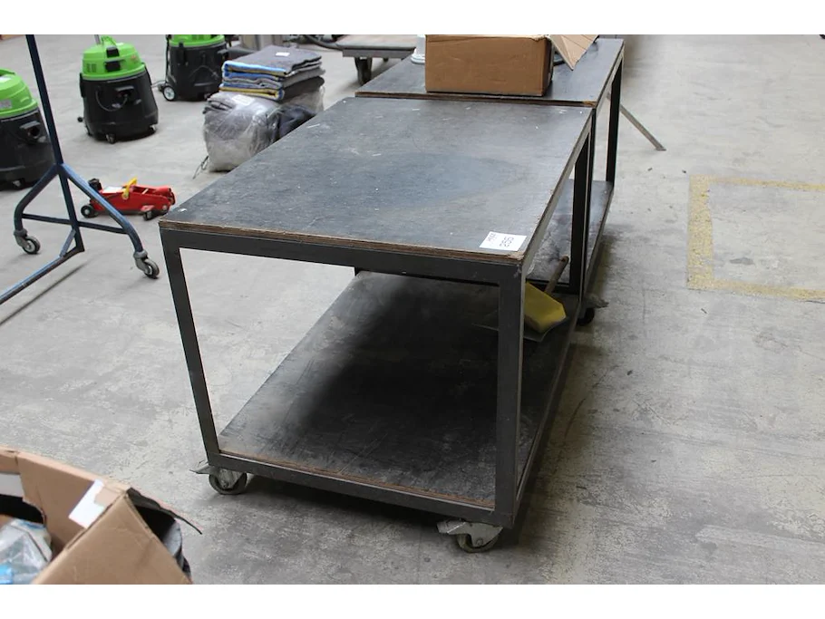 Twee werktafels met onderplateau met afmeting 100 x 75 x 77 cm. Let op: 1 rolt slecht.