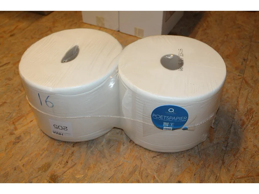 Twee rollen poetspapier QLEANIQ a 1000 stuks.