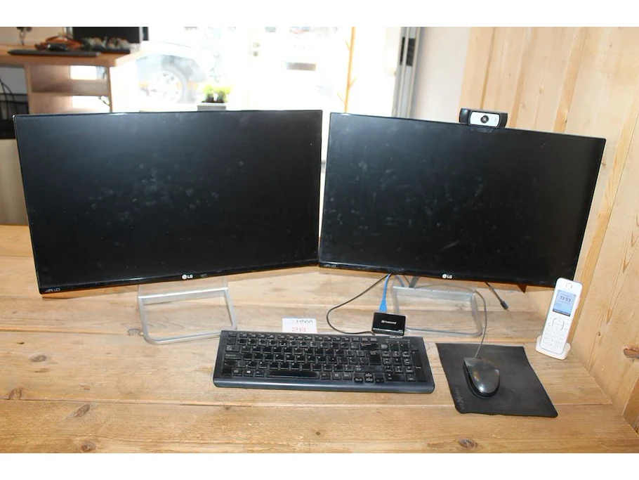 Pc-opstelling bestaande uit game pc medion md 34524 erazer p67066 mt39 met twee monitoren lg 24 inch, toets...