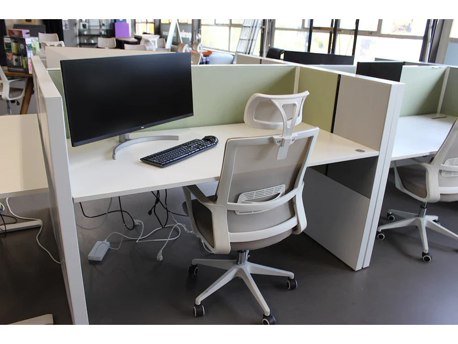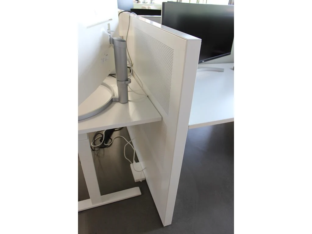 Dubbelzijdig elektrisch in hoogte verstelbaar bureau ahrend voorzien van akoestische panelen. totale afmeti... onderdeel van combinatiekavel combinatiekavel zijnde vier dubbelzijdige elektrische in hoogte verstelbare bureaus ahrend voorzien van akoestische panelen. kavels s005 en s013 t/m s015