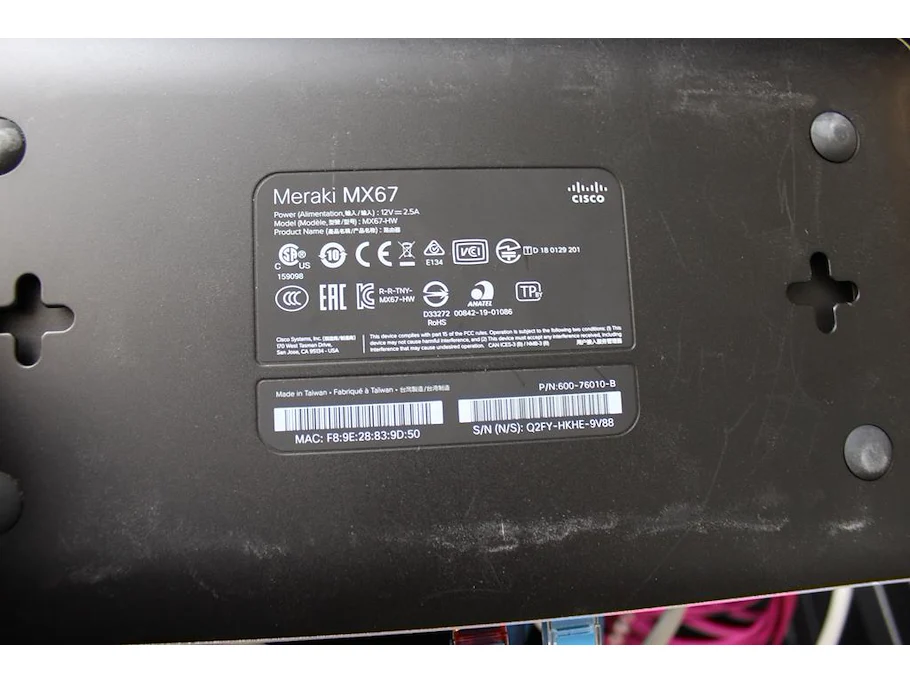 CISCO bekabelde netwerkbeveiliging / firewall Meraki MX 67.
