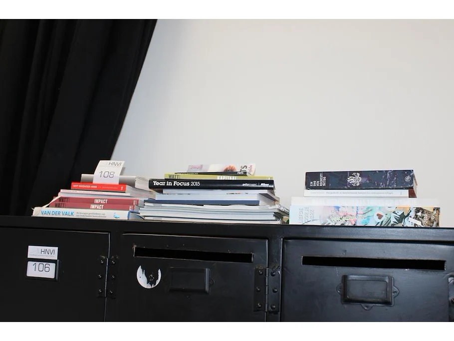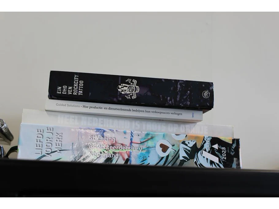 Diverse boeken op kast.