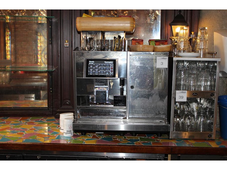 Espressomachine thermoplan b&w 3 ctm met melkopschuimer en koffiepad houder.