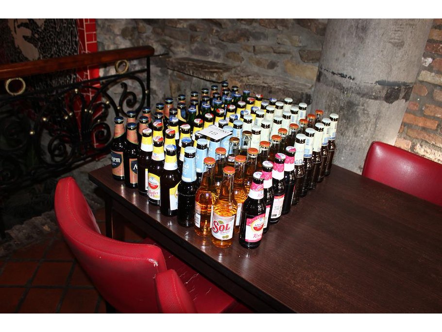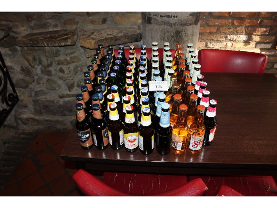 Bieren op tafel in diverse soorten zowel alcoholhoudend als alcoholvrij. Ruim 75 flesjes