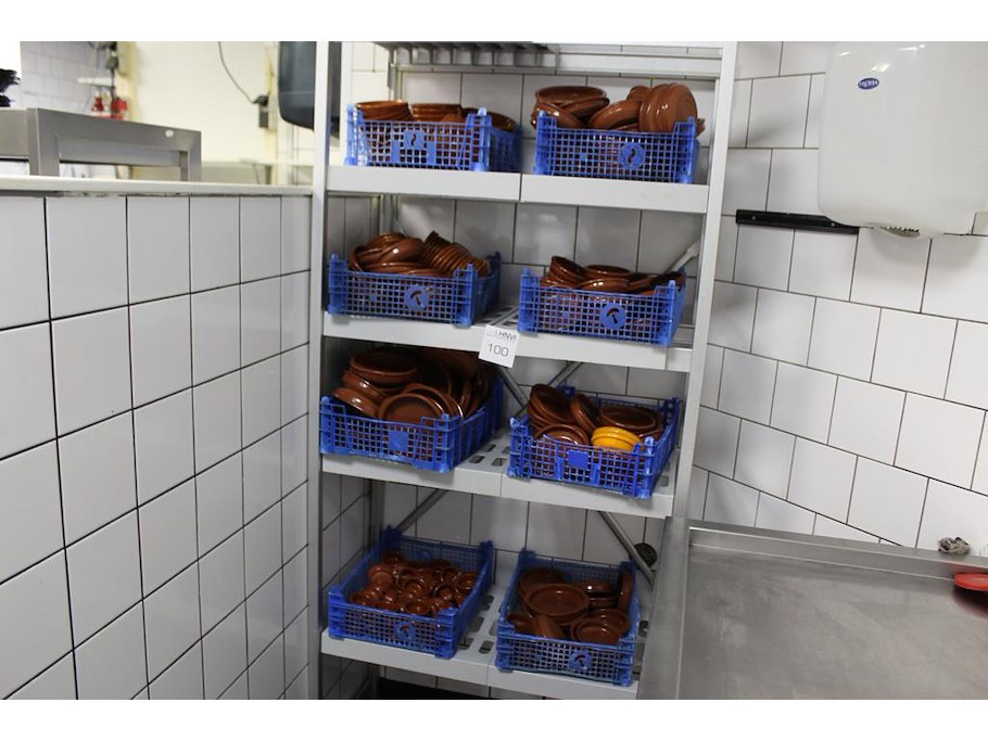 Tapas servies op vier schappen in diverse maten en uitvoeringen.