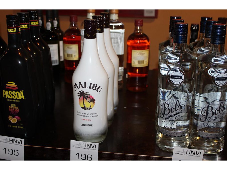 3 flessen malibu.
