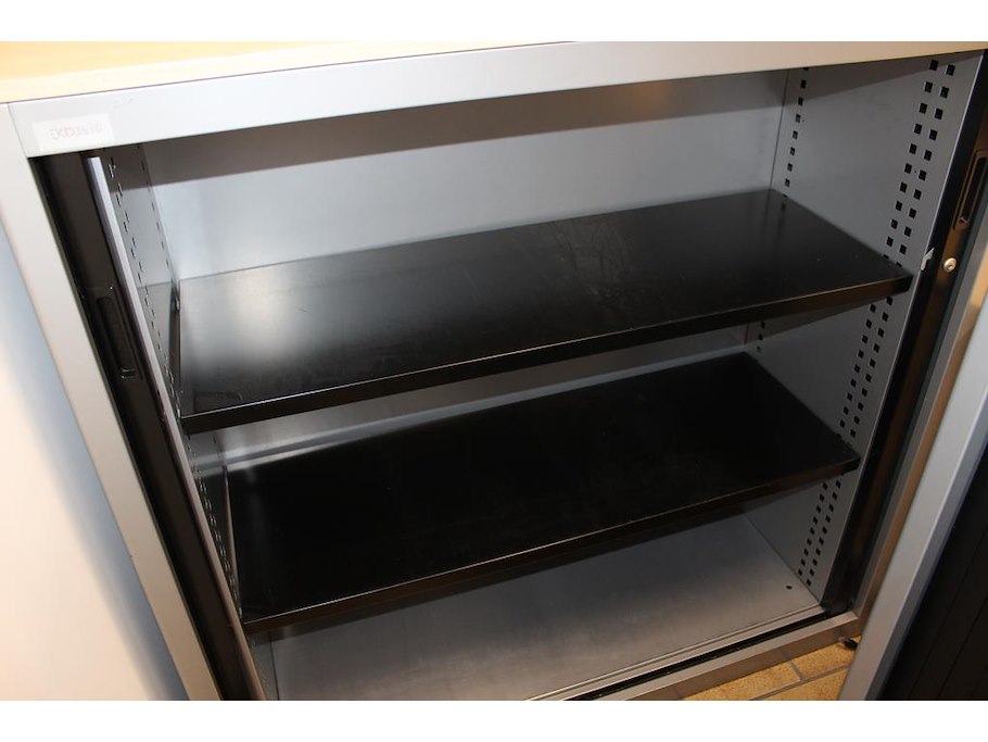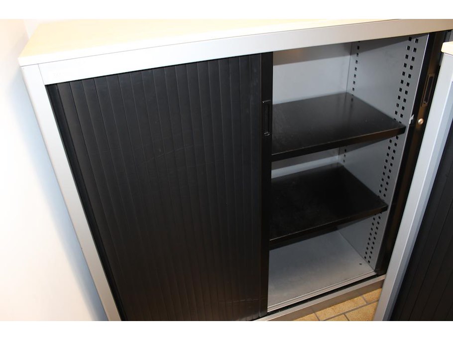 Twee magazijnkasten met roldeuren. afmeting 125 x 46 x 122 cm.