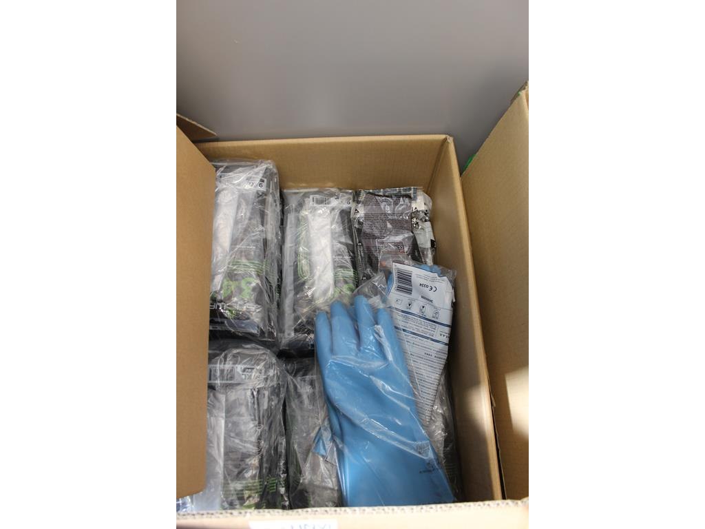 Handschoenen in drie dozen, diverse maten en uitvoeringen.