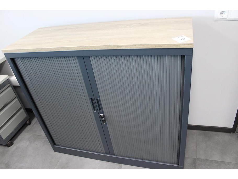 Archiefkast met twee roldeuren. Afmeting 120 x 44 x 108 cm.