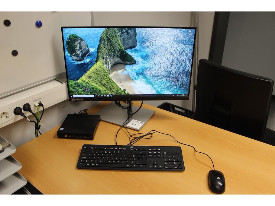 PC opstelling HP Elite Desk Intel i5-6500T-CPU, 8GB RAM, 256GB opslag, 128MB grafische kaart, incl. 27 inch monitor, toetsenbord en muis.