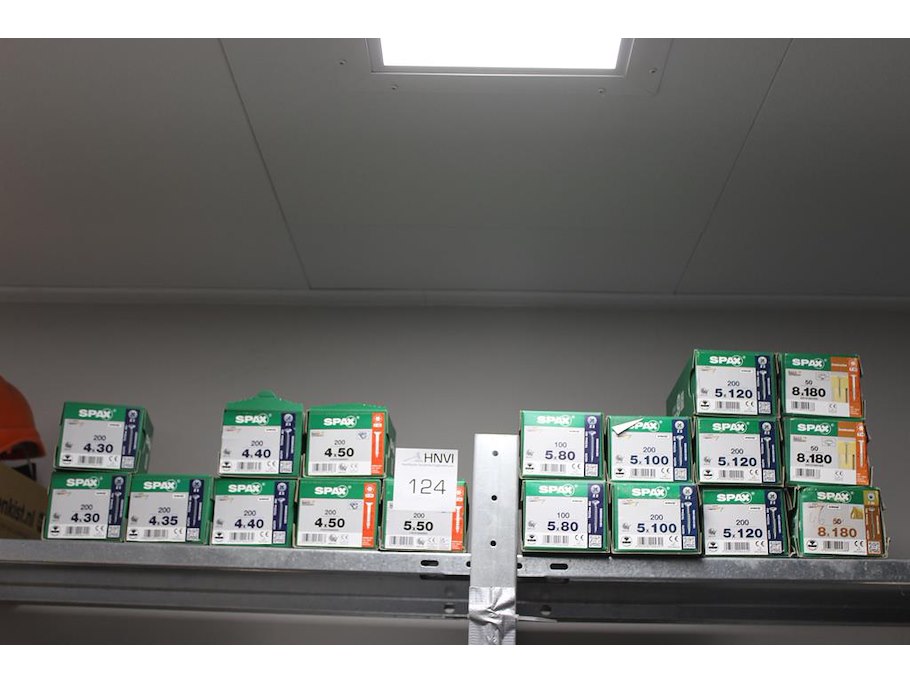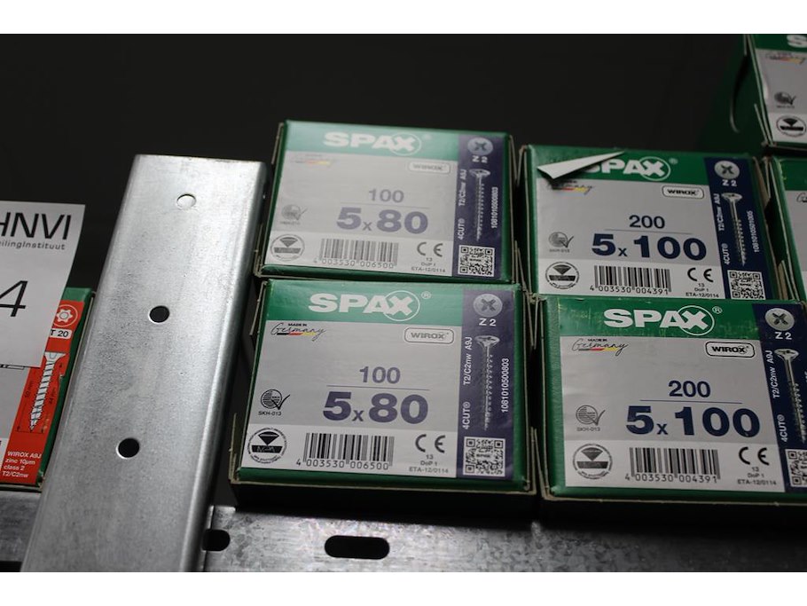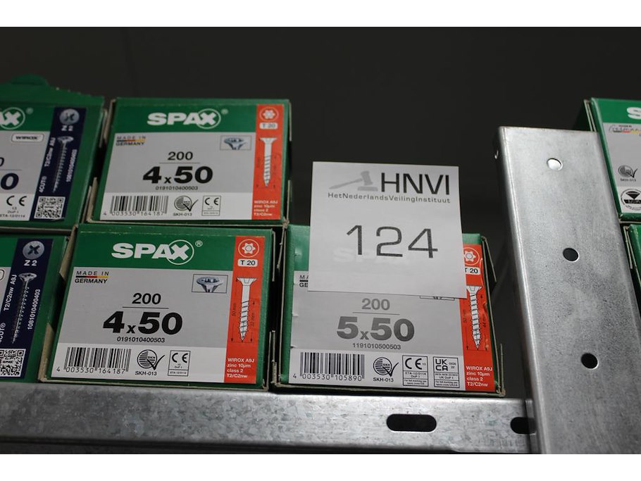 Schroeven SPAX in diverse maten, 18 doosjes voornamelijk vol.