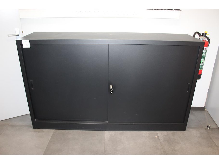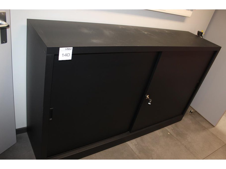 Archiefkast met twee schuifdeuren. Afmeting 180 x 45 x 106 cm.