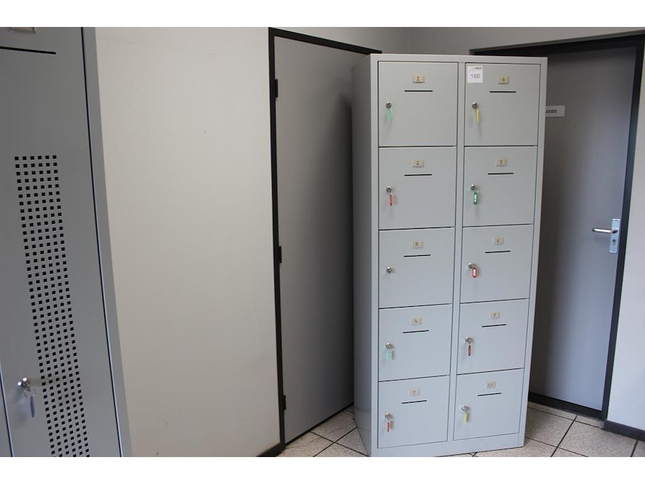 Lockerkast met 10 lockers. Afmeting 80 x 45 x 191 cm.