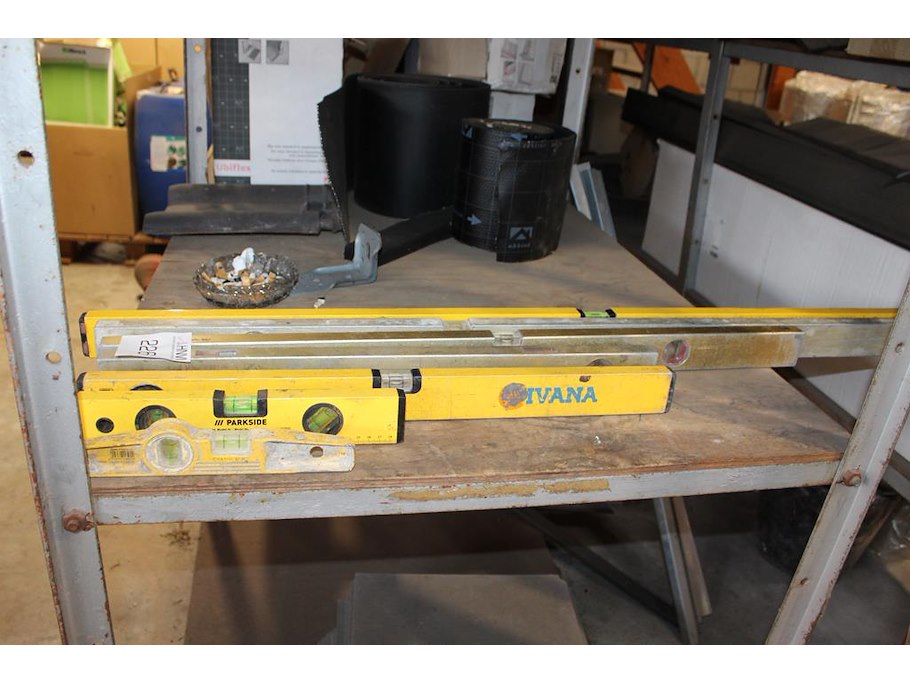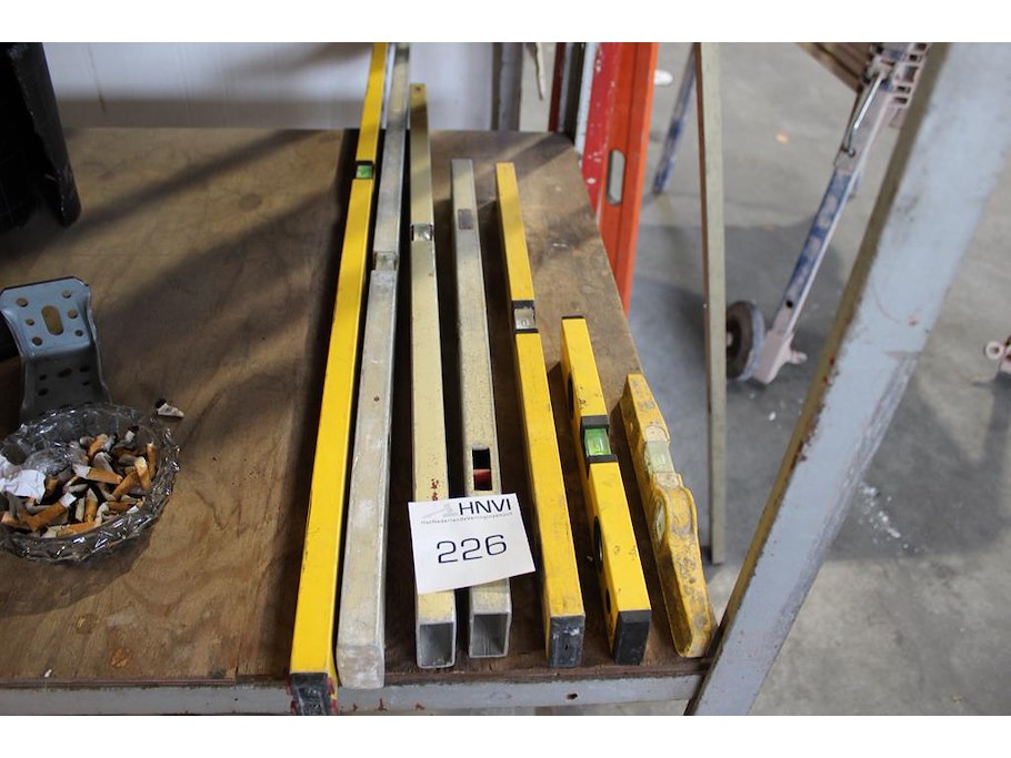 Zeven waterpassen in diverse maten en uitvoeringen.
