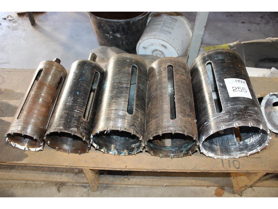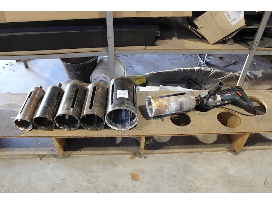 Boorhamer bosch met 6 potboren met diverse doorsneden w.o. 195mm, 155mm en 115mm.