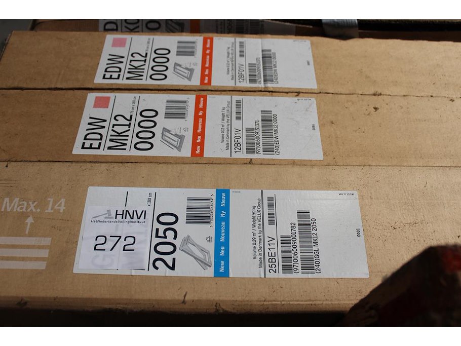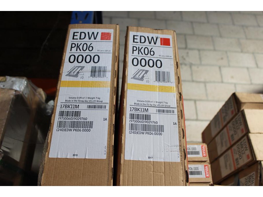 Onderdelen VELUX op drie stellingdelen voornamelijk sierstrips en goten.
