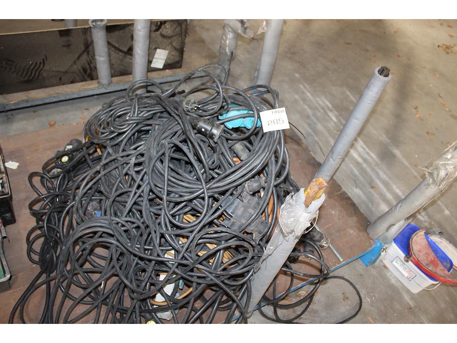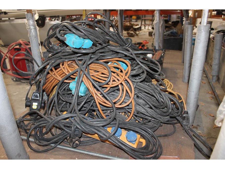 Grote hoeveelheid verlengkabels en verdeelstekkers.