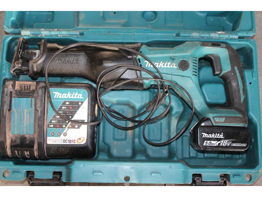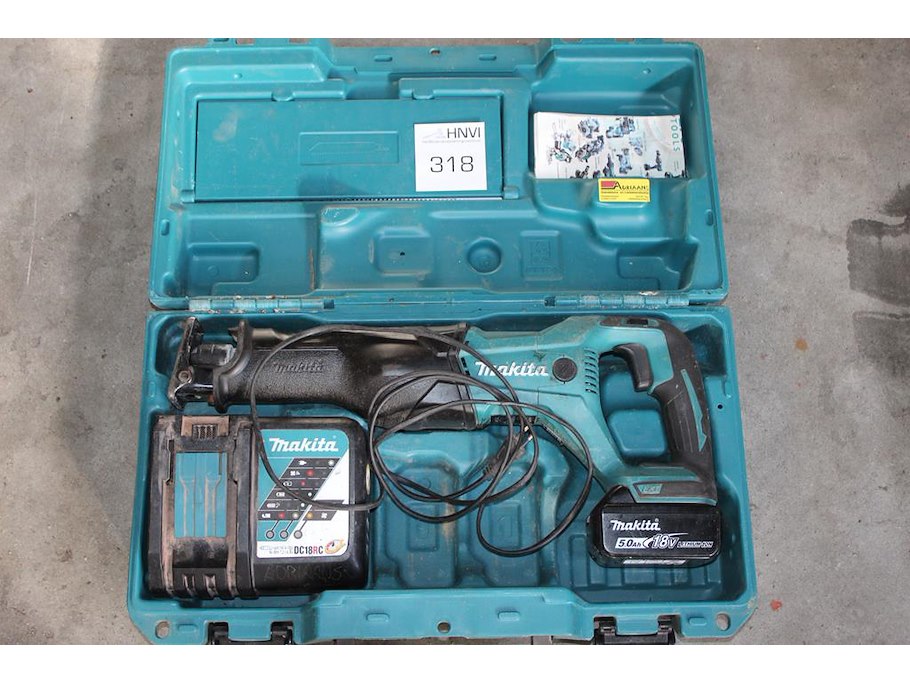 Accu recirprozaag MAKITA met accu en lader in koffer.