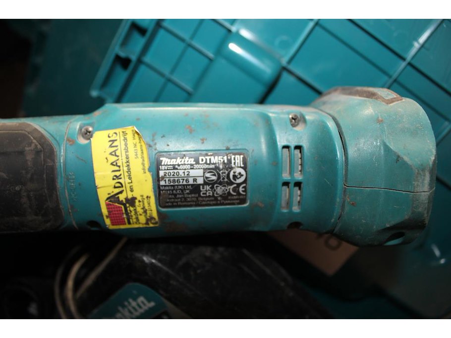 Accu multittool makita met accu en lader in kunststofkoffer.