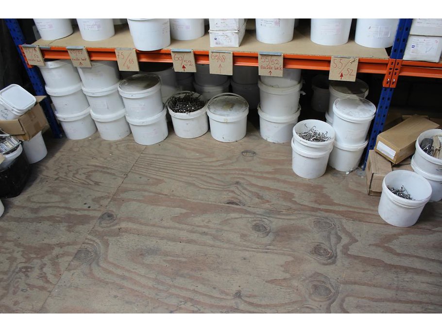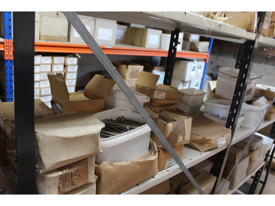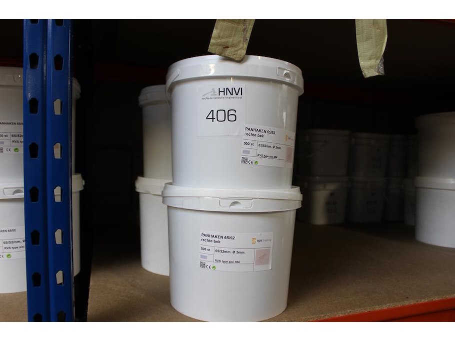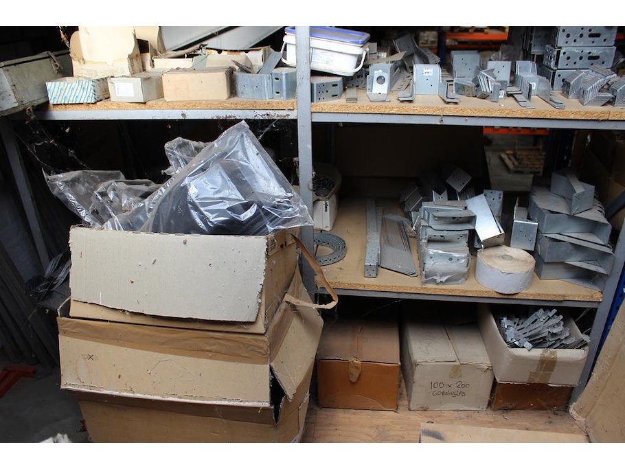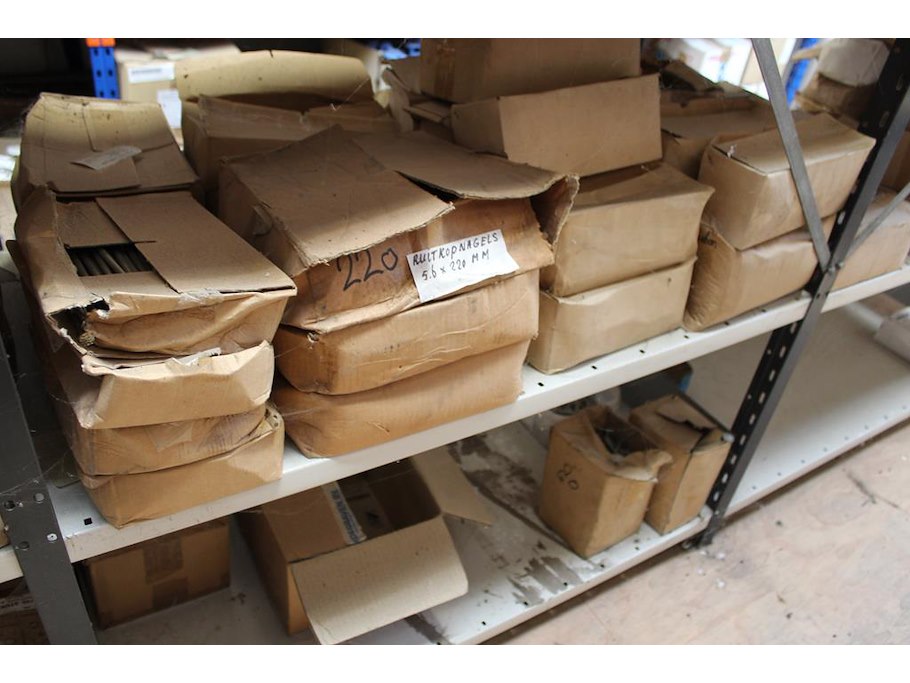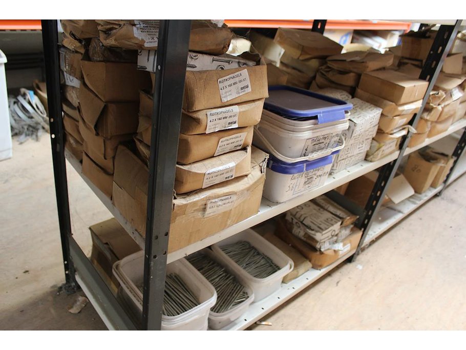 Panhaken, hoekkeperhaken, vorstbeugels, ruitkopnagels, schroefspijkers, houtdraadbouten en balkdragers en grote hoeveelheid in ruim 40 stellingsdelen.