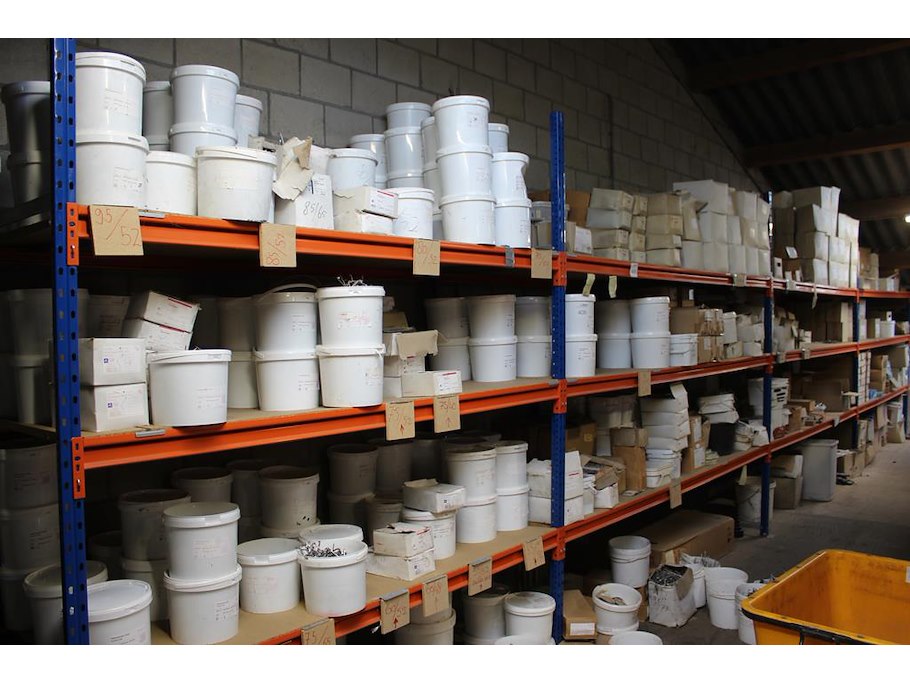 Magazijnstelling bestaande uit 10 staanders met hoogte 250 cm, 48 liggers met lengte 203 en 270 cm en 24 legborden. Let op: afhalen na 13.00u.
